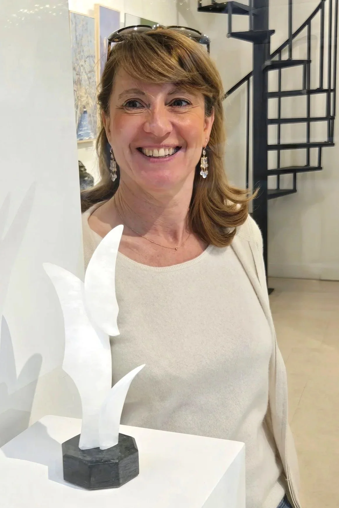 Aujourd’hui, Aude de la Bouillerie privilégie le travail de la pierre. Aux antipodes d’une démarche intellectuelle, son approche est purement sensorielle, depuis le contact initial toujours rugueux avec le bloc de marbre ou d’albâtre jusqu’à la délicatesse de la forme finale. Souvent, celle-ci jaillit sans préméditation : inspirée par la sensualité du matériau, l’artiste fait émerger du bloc l’exigence et l’élégance des lignes, la douceur et la légèreté de l’arrondi.